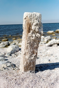 This is a photo from ldanderson on Flikr which shows how the coast of this lake is covered in barnacles.